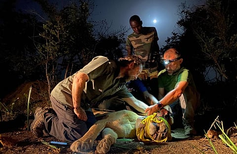 A team made up of members from both sides worked nightly over three months in 2021 and 2022 to track, lure and successfully collar the six lions in the 9,000 sq km park.