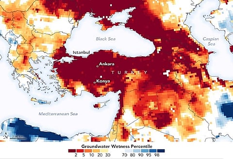 Most of Turkey has been under intense drought from the beginning of the year, after consecutive seasons of little or no rainfall, the Nasa Earth Observatory reported.