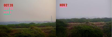 While the haze that had engulfed the city on November 1 lifted marginally, visibility remained low.