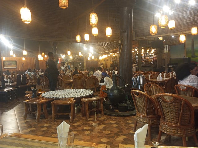 The aroma of sizzling beef and roasted coffee beans drifts through Totot, one of Addis Ababa’s most celebrated traditional restaurants. Waiter Yiednek Ahew, in a crisp white shirt and floral vest, carries a steaming platter of beef shekela with injera flatbread and berbere sauce. “Your meal, sir, fresh and hot,” he announces, his voice almost drowned by the hum of conversation.