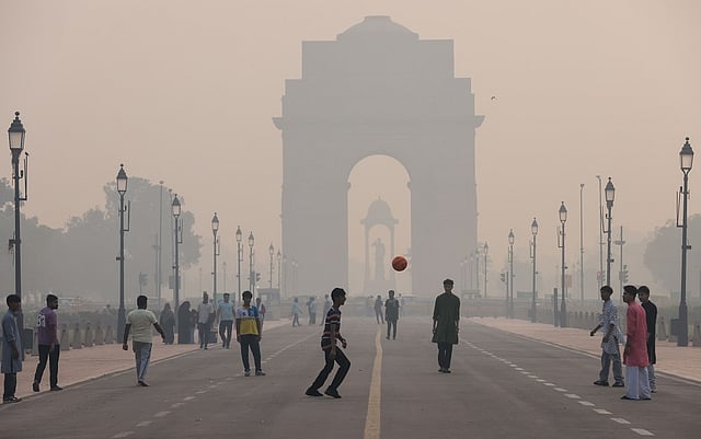 A group of boys plays near India Gate in New Delhi on October 21 morning.