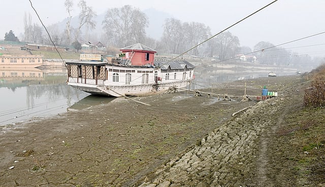 The Kashmir Valley is witnessing one of its most unusual early springs in decades, with the river Jhelum, its lifeline, dropping below the zero-gauge level while temperatures surge to record highs.