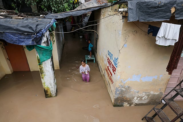 There is no longer a flood situation, but these people wait at makeshift evacuation tents on Delhi’s sidewalks and under bridges as their homes and approach roads remain buried under six feet of mud and silt deposited by the river. They have complained about the lack of any support from the authorities to clean up their alleys and make their homes livable again. Their repeated pleas for help went unheard and the politicians vanished as the flood receded, a resident told the media.