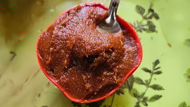 Take one medium-sized wood apple (not completely raw or not complete ripe) and break it. The cover is very hard. So, use a hammer to break it. Separate the pulp. The pulp should be approximately 3/4 of a cup. Sieve it and remove the seeds to get smooth pulp. Add chilli powder, cumin seeds, both salt and jaggery powder and grind it in a mixer. Your tangy wood apple chutney is ready to serve. It will remain fresh for eight days in a fridge.