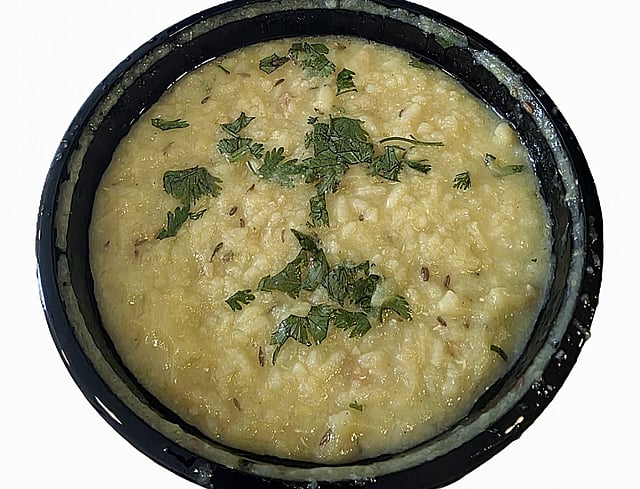 Soak the millet with enough water for 3-4 hours. In a pressure cooker, heat oil & fry chopped onion, tomato and ginger-green chilli paste for a few minutes. Add chopped veggies, salt and spices. Cook it for a few more minutes. Add soaked millet, soaked dal and cook it for five minutes. Add water and pressure cook it with four-five whistles. Now, in a tadka pan, heat ghee and add dry red chilli, baby onion, cumin seeds and red chilli powder. Fry it for a few minutes. Add it to the khichdi. Add a tablespoon of ghee over it and enjoy with papad.