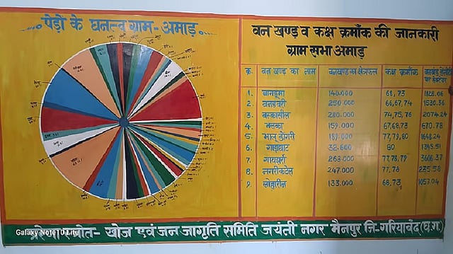 The forest resource management committee has divided the forest into nine blocks and named them Bagduma, Bandabari, Baskasil, Bhalka, Bhalu Dongri, Gadaghaat, Gaijharra, Nagarikatel and Loharin. Along with the area of each forest block, their density has also been measured. For example, the Gaijharra forest area has the highest density of 3,606 per hectare. The forest area with the lowest density is Nagarikatel, where the density is 235 per hectare. This exercise has made it easier for village residents to understand the forest areas where work is needed.