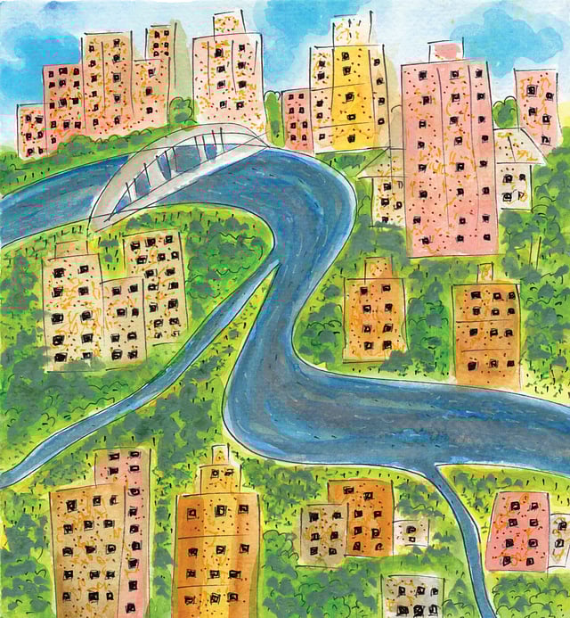 The illustrations created by artist Koustabh Chakraborty are from the book Towards Sustainable Flows (2024) by Jaladarsha.