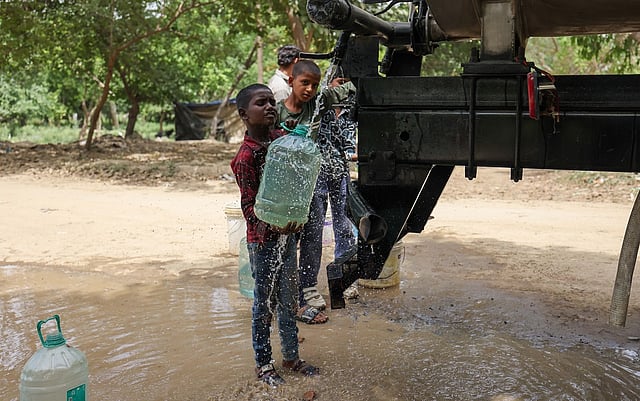 These photos show a ‘tanker’ supplying drinking water to the residents of the Yamuna floodplains in Delhi, as demand has surged with soring temperatures.