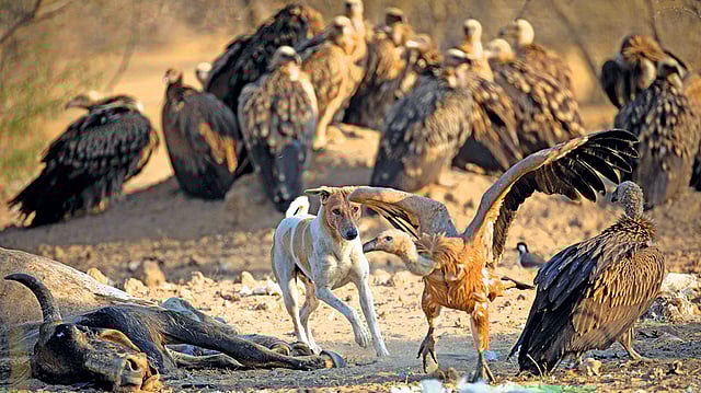Jorbeer, the Keru landfill in Jodhpur district and Bhadariya oran (sacred grove) in Jaisalmer are just some sites in Rajasthan where dogs and vultures inadvertently share a feeding guild. In all the sites, dogs seem to be the dominant scavenger.