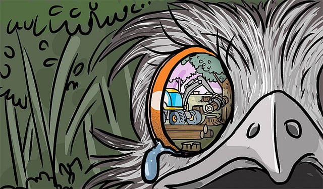 Once, there was an adorable emu in a forest. His name was Max. He was young, playful, and naïve. One day, while he was having fun, he heard a noise. Out of curiosity, he went to check where the noise came from.