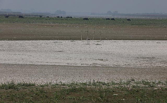Okhla Bird Sanctuary in Delhi is parched as water is drained for annual repairs, delaying the arrival of winter migratory birds