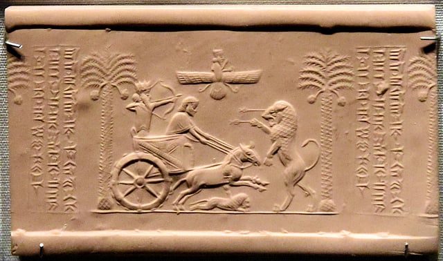 In The Horse and the Lion in Achaemenid Persia: Representations of a Duality (2021), Eran Almagor writes that, “As successors of the Neo-Assyrian Empire, the Persians continued the practice of imperial lion hunting with its symbolic meaning of overcoming the power of dangerous chaos. Yet, in the eastern monumental representations the hunt is absent, because of ideological reasons going back to the religious significance the lion had for pre-imperial Persians; this importance is rather observable in the numerous other manifestations of the lion in monumental Persian art.”