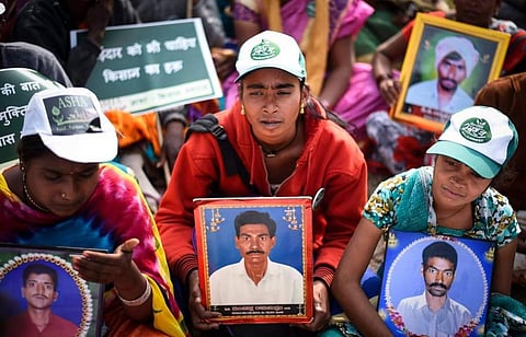 Family members of farmers who committed suicide demonstrate in Delhi (December 2018). Photo: Adithyan PC