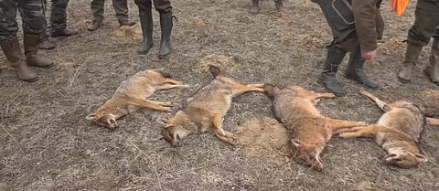 The winning team, which had all its teammates dressed in matching jackets, killed about 16 of the roughly 60 animals lined up for display when the contest ended. One competitor told investigators from the HSUS that he used an AR-15 rifle with night vision, adding, “I enjoy it.”