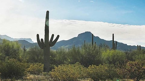 Parts of the Sonoran of north America are so naturally green that visitors might not even identify them as desert. The vegetation too is extremely diverse. Apart from the trademark gigantic saguaro cactus, it grows barrel cactus, yucca, prickly pear, century plant, ironwood, elephant tree, mesquite, creosote bush and the boojum tree.