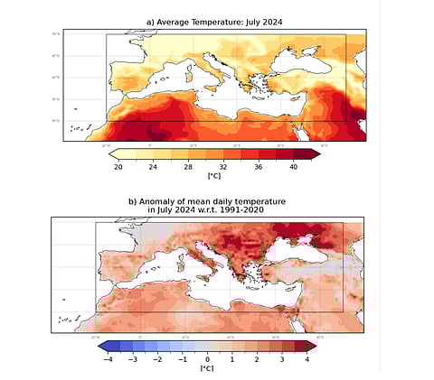 On July 19, 2024, temperatures touched 40°C in Andalucia and Spain. Greece witnessed its second heatwave this summer, with the mercury reaching up to 43°C. During the last 10 days of July, southern and eastern Europe experienced extreme heat, with temperatures increasing to 44°C.