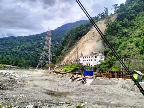 A major landslide occurred at the NHPC Stage 5 dam site in Balutar, near Singtam town in Sikkim, at 7:30 am, damaging an NHPC GIS building and six residential houses. Significant cracks have also developed along the Singtam-Dikchu road, rendering it inaccessible.