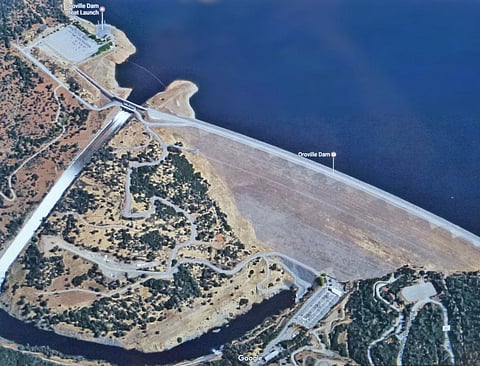 The Oroville dam is nearly full following winter storms that brought relief to the drought-hit state after four years. As on Friday (February 10), water levels were less than 7 feet (2 metres) from the top of the dam. If the emergency spillway structure—a concrete lip on the north side of the dam—get a dent by the enlarging chasm, it could collapse and the water behind that barrier would come down the hill uncontrollably, setting the stage for massive flooding into Oroville and communities farther south.