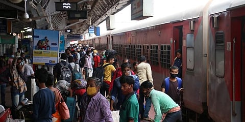 Around 2,000 people arrived at the Berhampur railway station in Ganjam district in two special trains, Okha-Puri via Surat and Pune-Bhubaneswar April 9, 2021.