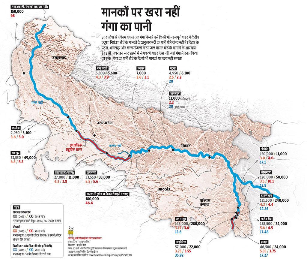 इसने स्पष्ट रूप से एसटीपी की उपयोगिता को कम किया है। कानपुर के जाजमऊ में घरेलू अपशिष्ट जल उपचार संयंत्र की क्षमता 130 एमएलडी है। लेकिन अप्रैल-मार्च का औसत केवल 60.5 एमएलडी था। एनएमसीजी के मुताबिक, कानपुर के सभी मौजूदा संयंत्रों में 414 एमएलडी की क्षमता है लेकिन केवल 230 एमएलडी ही उपचारित हो पाता है। उत्तर प्रदेश स्टेट एन्युअल एक्शन प्लान 2017-20 के मुताबिक, कानपुर के केवल 40 प्रतिशत क्षेत्र ही सीवर लाइन से जुड़ा है। पटना में 109 एमएलडी के चार उपचार संयंत्र हैं, लेकिन केवल 32 एमएलडी क्षमता का ही काम हो रहा है।