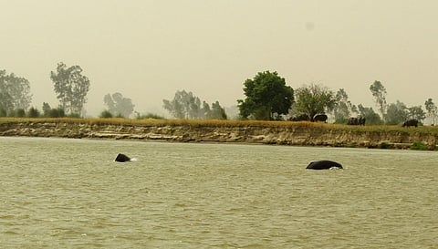 (Above) Indus Dolphins swimming in the Beas river in Punjab, India Credit: WWF-India