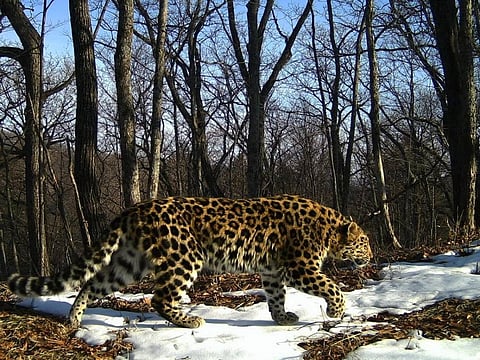 An Amur leopard in the snowy taiga. Photo: Ministry of the Russian Federation for the Development of the Far East (Ministry of the Development of the Far East) via Creative Commons