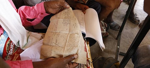 Residents of Belar village verify their land titles at the panchayat office. Photos: Vikas Choudhary