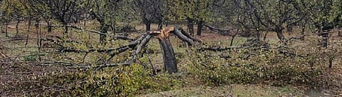 They found that unseasonal snowfall on November 7 had wrought havoc in the Kashmir Valley. It led to the destruction of 25 to 50 per cent of the apple trees in the region.