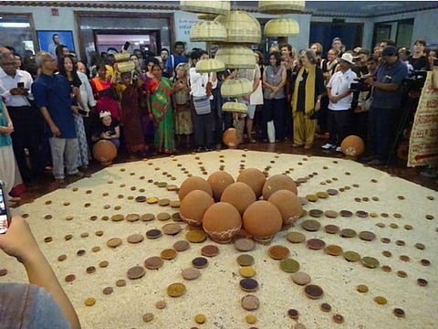The 13th Permaculture Convergence began on a highly symbolic note at the Prof. Jayashankar Telangana State Agriculture University, Hyderabad on November 25, 2017. The conference started with sowing of seeds and inauguration of seed box, which consisted of traditional variety of seeds. The senior most women farmer carried the basket full of seed on her head and prayed to the Lord for abundant and continuous production.