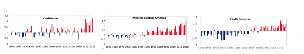 2020 was among the three warmest years in Central America and the Caribbean — and the second warmest year in South America — with a 1 degrees Celsius, 0.8°C and 0.6°C rise above the long-term average of 1981-2010 reference period.