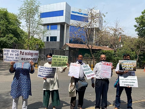 Environmentalists protested against the Stage II clearance for the Parsa coal block, that will uproot the lives of around 700 families form six villages in Chhattisgarh.