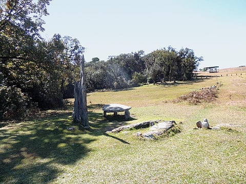 Not so far from the entrance is the preparation ground for rituals. The old stone “long table” is now broken but the stones still remain. At a distance lie stones of smaller lengths where young folks used to wait. Only adult men are allowed to enter the ritual spot. At the heart of Phiephandi, there is a large flat monolith, surrounded by five groups of small monoliths. The large stone is where the king used to stand during the sacrificial rituals and small stones were the sites of sacrifice. The sacrifice inside the forest had always been a red bull. But these days, rituals take place at hamlets and the sacrifice is usually of a cock.