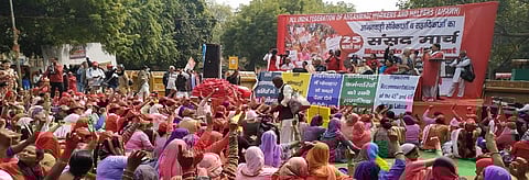 Anganwadi workers took out a march to Parliament against the delay in implementing the resolution to increase their honorarium and pension, on February 25, 2019.