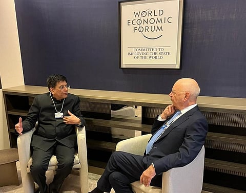 The urgency around embracing 4IR technologies is visible even in India. Here, Union Minister of Commerce and Industry, Piyush Goyal meets Klaus Schwab at Davos 2023. Photo: @PiyushGoyal / Twitter