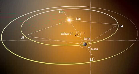 The diagram shows the location where Aditya L1 will be placed. Courtesy: ISRO