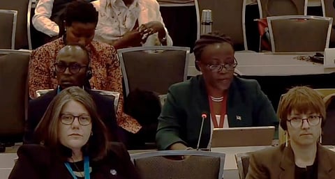Co-Chair of the High Ambition Coalition and Minister of Environment of Rwanda Jeanne d'Arc Mujawamariya @MujaJeanne, during the opening of the 4th Plastic Treaty negotiation in Ottawa, Canada. Photo: @HACplastic / X (Formerly Twitter)