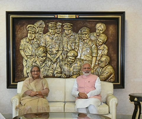Prime Minister Narendra Modi with Bangladesh PM Sheikh Hasina Wazed. Photo: @ajitsinghpundir / Twitter