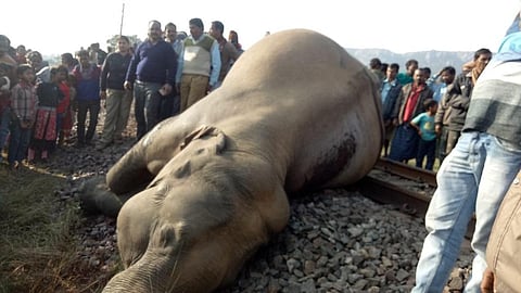 An elephant who was hit by a goods train near Ramachandrapur village in Keonjhar district of Odisha in November. Credit: Ashis Senapati
