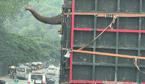 A picture of Pratima sticking her trunk outside the vehicle — labeled as ‘animal ambulance’ with Gujarat registration numbers — was circulated across various social media platforms on the morning of May 2.