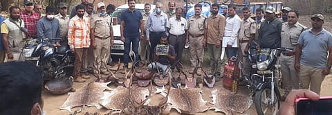 Forest officials recovered two heads of spotted deer and five deer skins in Karnataka's Shivamogga district Photo: Nibedita Sen