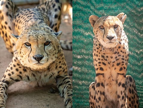 The two are 5.5 years old. Before being brought to India as part of the intercontinental translocation of the spotted cats, they had been living on Cheetah Conservation Fund’s 58,000-hectare private reserve near Otjiwarongo, Namibia, since July 2021.