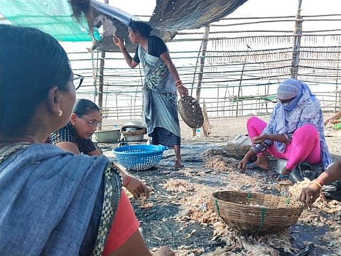 “At present during high tide, I manage to catch 10-50 kgs of a variety of seafood, such as crabs, prawns and bombil, depending on my luck. Around 25 years ago, the volume would be double,” explained Raksha.