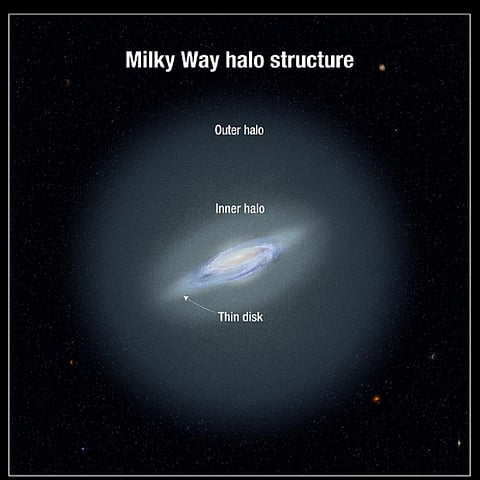 Milky Way’s outer halo envelopes the inner halo, within which is the disk of the galaxy. It houses the solar system, according to experts.