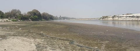 Mishra is not exaggerating. The river bed is almost dry and Ganga has reduced to a narrow, dark-coloured stream since the Kumbh Mela is now over.