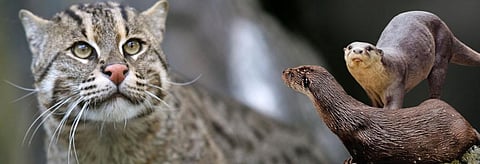 All three are facing threats of habitat loss and especially the loss of wetland vegetation throughout the world, that gives them refuge and a space to breed in. The fishing cat is ‘Vulnerable’ according to the International Union for Conservation of Nature Red List of Threatened Species. So is the smooth-coated otter. The Eurasian otter is ‘Near Threatened’.